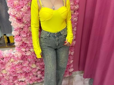 new jeans ballon elasticizzato con disegni leopardati brillantinati in rosa